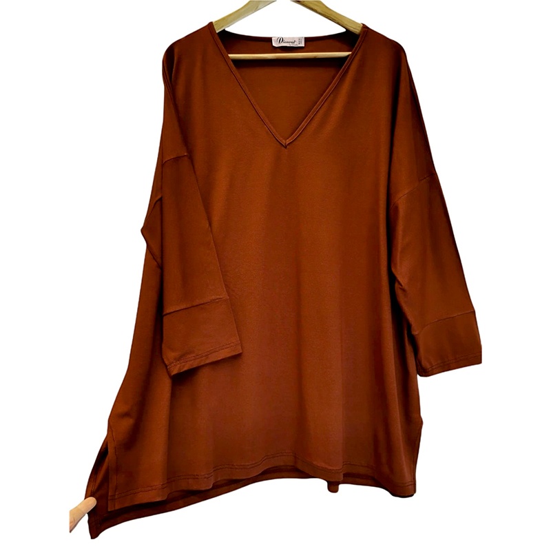 Mπλουζοφόρεμα με V σε χρώμα κάμελ